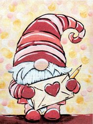 Sat. JANUARY 10, 2025 * VALENTINE GNOME $35.00 FOR AN 11" X 14 CANVAS. UPGRADE TO A 15" ROUND DOOR HANGER FOR $45